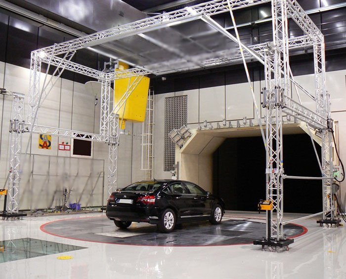 Fruit de deux années d’études, le module de turbulence mis au point par notre équipe de recherche et développement permet de simuler en soufflerie les turbulences de sillage rencontrées sur la route. Chaque véhicule réagit d’une manière spécifique à ces turbulences générées par le vent et les véhicules qui le précédent. Grâce à cet essai novateur, la gêne spécifique qui en résulte pour les passagers peut être appréhendée, et par exemple mesurée avec les Têtes Acoustiques. Il est aussi possible d’évaluer la sensibilité des véhicules à ces turbulences grâce à la Balance Aérodynamique.