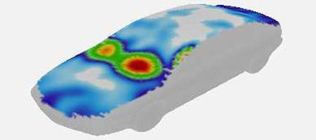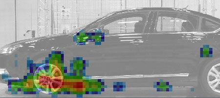 Ces antennes permettent une analyse par gamme de fréquence (octave ou tiers d’octave) des différentes sources aéroacoustiques à l’extérieur du véhicule : rétroviseurs, poignées de porte, passage de roues, essuie-vitres, antennes,…